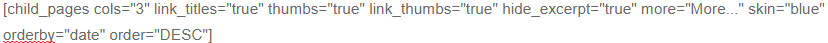 NOTE: If you add the child pages code and you can’t see it, add it in code mode.